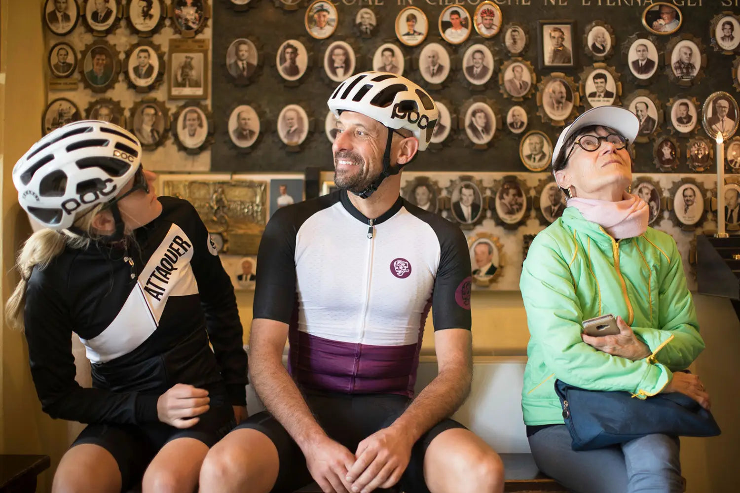 Approaching the top of the climb, the team took a break in small but busy café for croissants, coffee and classic salami sandwiches. The atmosphere was relaxed as we shared banter and jokes about the chill, the painfully beautiful climbs and the descent ahead, before grabbing our gilets and warmers to rug up for the next leg of the day's journey.