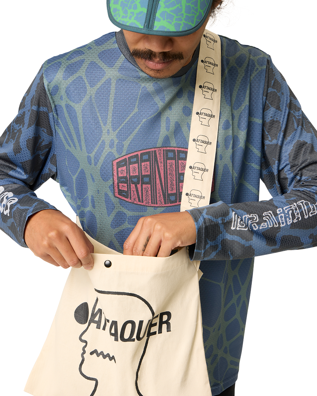 A classic musette ideal for carrying a variety of things and ensuring everybody knows you like bikes. Featuring 100% cotton construction, an angled strap so it sits flat on your back while riding and a button closure to prevent unwanted content spillage.