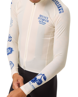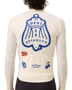 The Deus Ex Attaquer Men’s Long Sleeve Jersey brings performance and personality together, inspired by the bold aesthetic of Japan’s custom bike scene. Designed in Sydney and crafted in Italy, it’s built from lightweight, compressive Italian fabrics that support muscles, regulate moisture, and enhance aerodynamic efficiency.