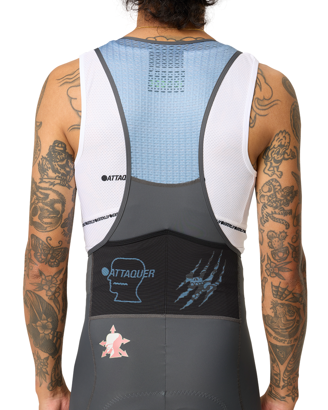 Constructed from 100% recycled, Oeko-Tex® certified nylon, the Brain Dead x Attaquer Cargo Bib Shorts offer double the carrying capacity with four streamlined cargo pockets for seamless access on the move. Additional leg and back pockets, broader seamless shoulder straps and higher density, pre-dyed lycra with a more compressive fit all go hand in hand with our signature two-piece, ergonomically contoured chamois to make these both the most comfortable and sustainable bib shorts you’ve ever worn.