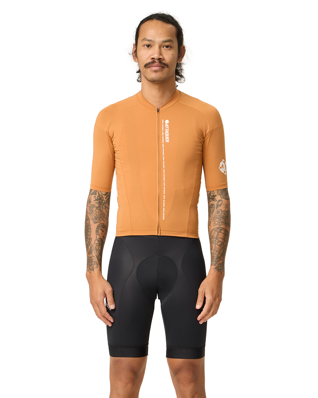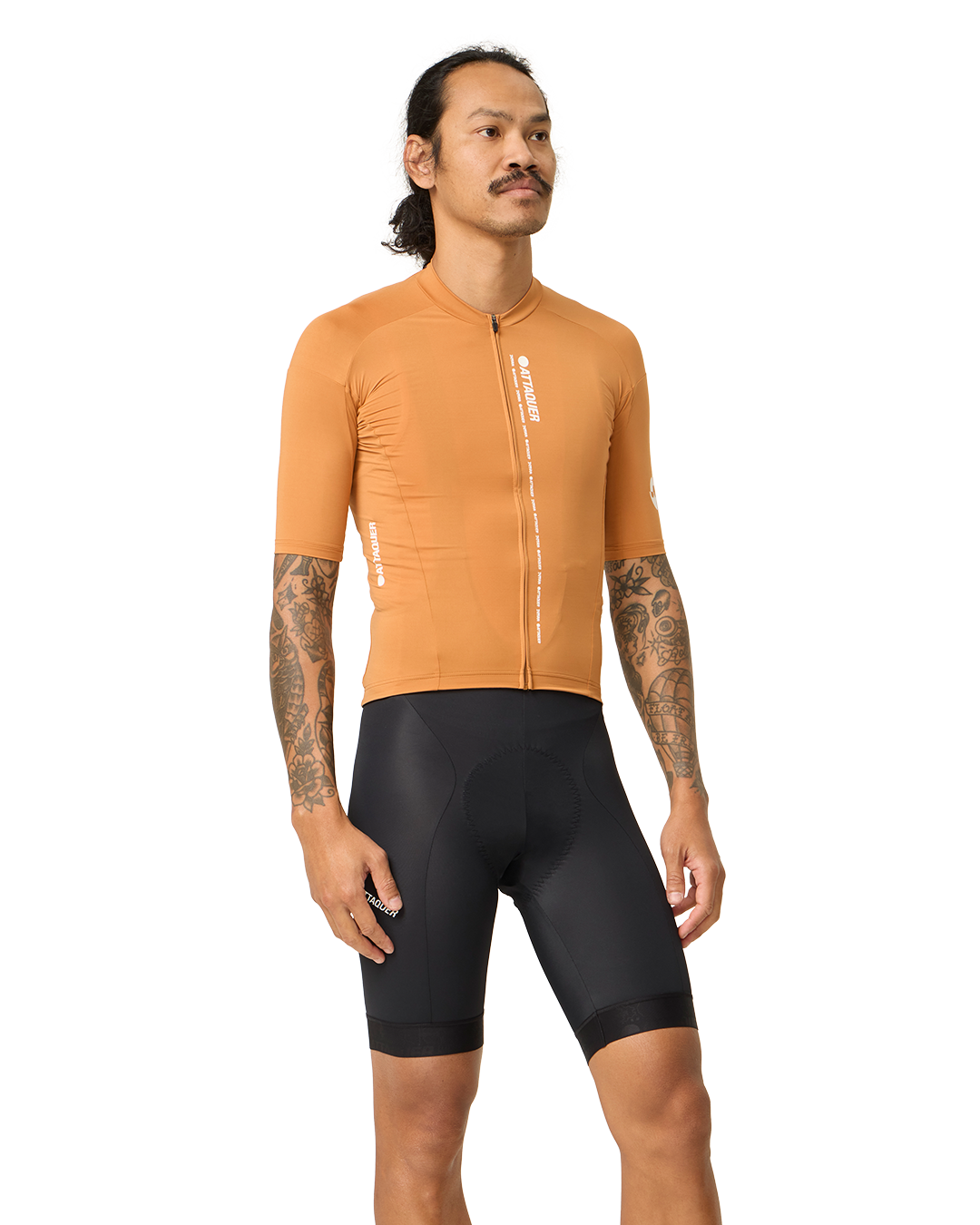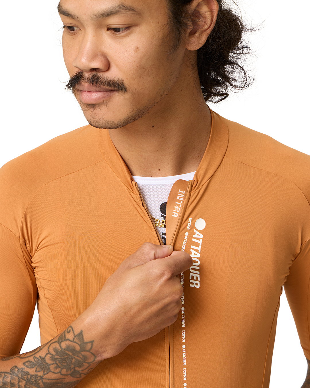 The Intra jersey is stylish, comfortable and an elegant yet such a unique jersey. The jersey feels amazing on the skin. The material breathes well and I find for the climate in northern NSW is perfect. Our winters are mild and summers humid and this jersey is made for such conditions. The ochre colour resonates with me. Ochre is such a wonderful colour. I congratulate Attaquer for their decision to go with ochre, a colour with such depth and unique qualities. Well done. I predict by the end of the summer I will have a few more Intra jerseys and bibs in my collection. The Intra range is fantastic value great quality and style. Well done.