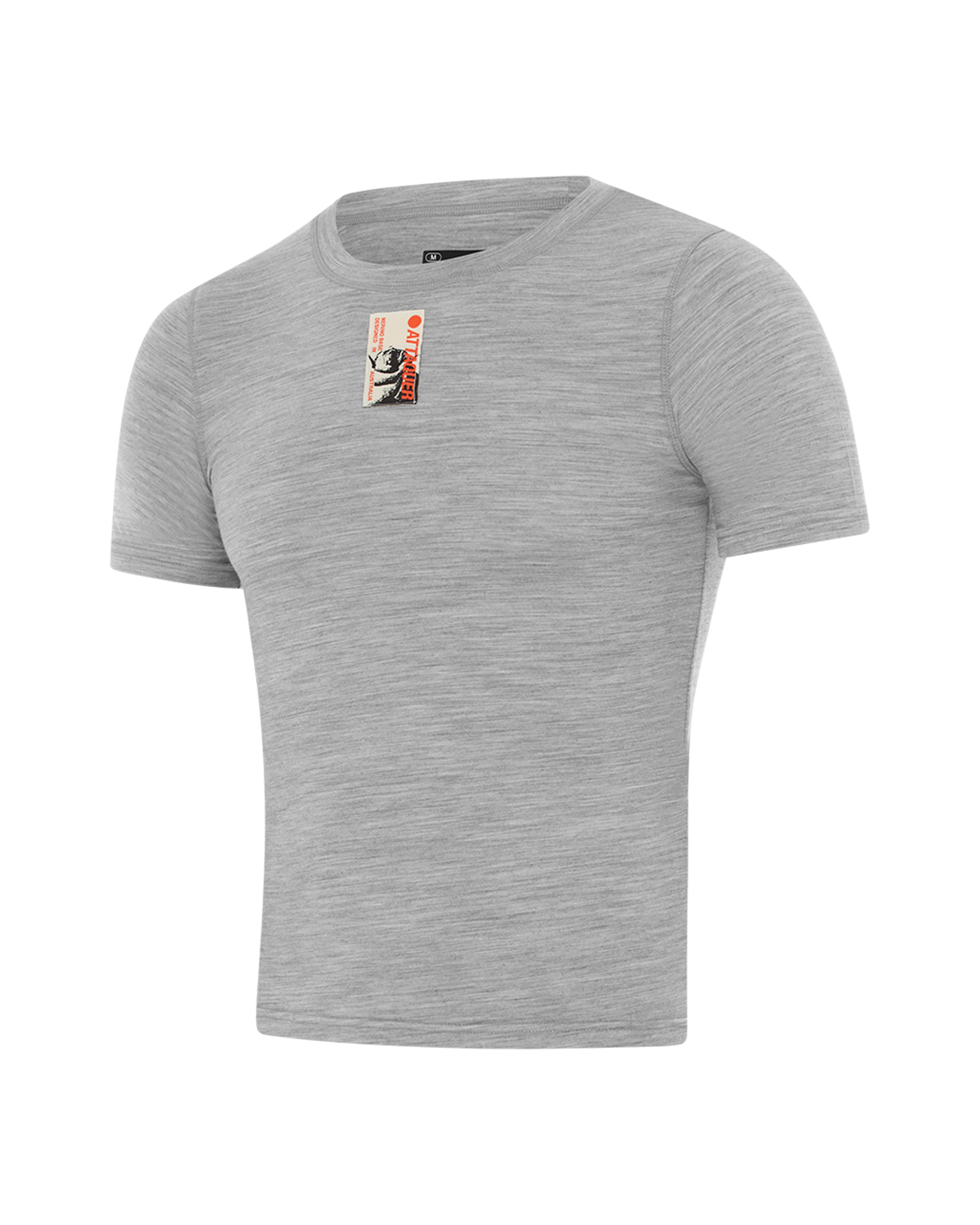 Merino Base Layer Short Sleeved Grey feature display lifestyle
