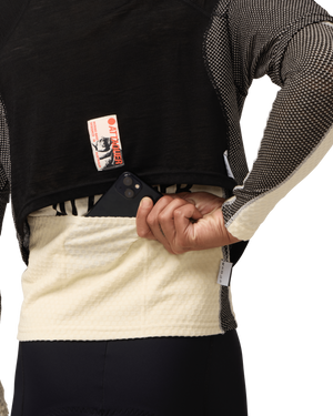 The Merino Tech Tee Crop is designed for riders who want lightweight performance with easy access to cargo storage. Crafted from a 65% Australian Merino and 35% Polyester blend, it delivers natural thermoregulation, breathability and odour resistance in a 130gsm, fine 18.5-micron knit. The cropped silhouette sits above cargo bib and base-layer pockets, while underarm mesh panelling boosts airflow during harder efforts. Finished with 4-needle flatlock seams and high-density reflective detailing, it offers low-friction comfort and all-day versatility across changing temperatures.