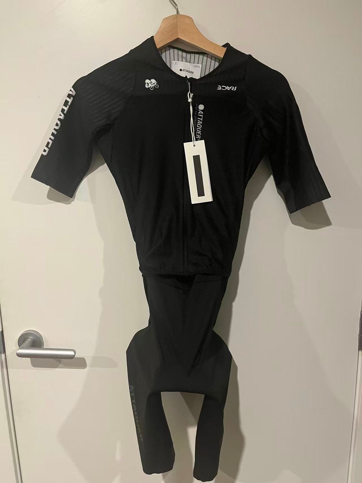 Engineered for absolute efficiency the Attaquer Race EXOsuit is a unified kit designed for seamless speed. The EXOsuit is built for riders who demand every aerodynamic and performance advantage. Constructed from premium European technical fabrics, it features a precision-mapped sleeve and shoulder panel design to minimise drag. High-stretch, shape-retentive materials move seamlessly with the body at race pace and lightweight mesh torso panels maximise breathability. A laser-cut silicon leg gripper ensures a secure, barely-there fit. Reflective logos and rear pocket binding offer low-light visibility without adding bulk.